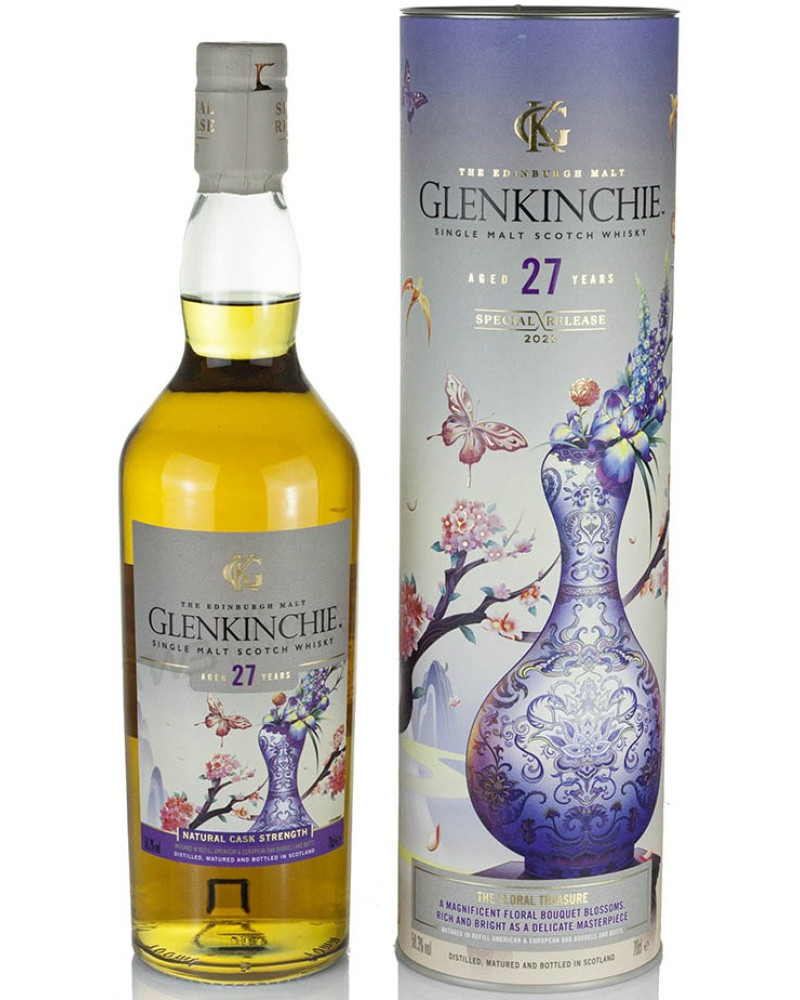 Introducing Glenkinchie 27 Year Old Special Releases 2023 Single Malt Scotch Whisky bottled at natural cask strength - Delicate brush strokes record every detail of the blossom, heather and orchard fruit that fell on these bountiful lands during the reign of a great dynasty, creating a vibrant bouquet. A treasured enamelled masterpiece, delicately crafted by expert hands, the porcelain vase is a poetic embodiment of the empire’s rich floral abundance. Our Malt Master drew inspiration from the exquisite porcelain of China’s great dynasties to create the oldest-ever Glenkinchie bottling direct from the distillery. Just as it took countless man-hours to create the precious vases of the great emperors, this rare whisky has been slowly matured for twenty-seven years to achieve an imperiously refined expression of its lush, floral flavours. A hint of fruit as the nose opens conjures an image of the apple orchard, soon joined by light touches of almond and vanilla, before lush meadow-grass aromas develop the floral theme. Smooth and pleasing in texture, the opulent and rounded taste starts lightly sweet and becomes elegantly drying, with a vibrant oaky spiciness that persists in the dry finish.